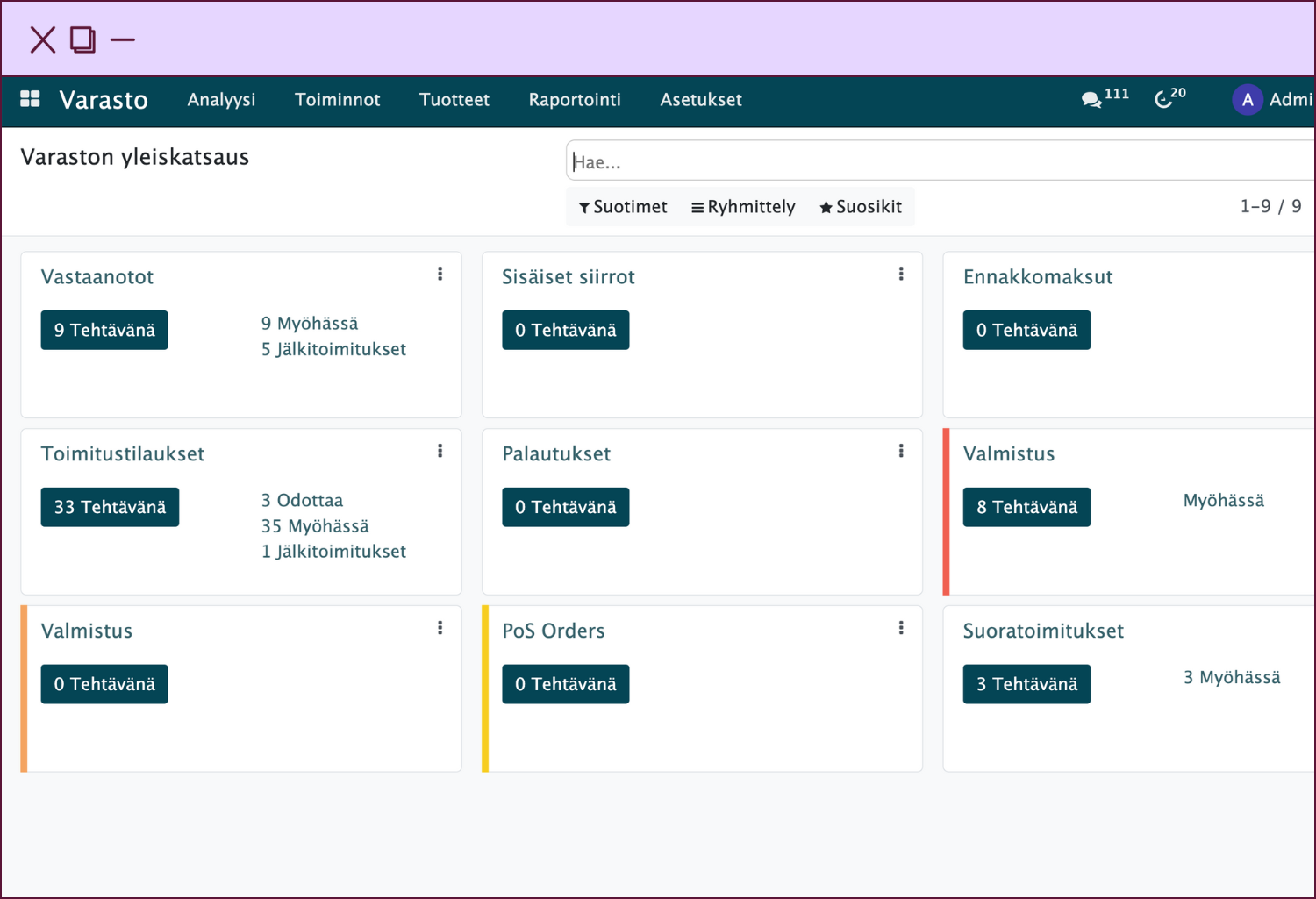 - Reaaliaikainen tilannekuva varastosaldoista ja varastonarvosta